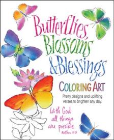 Butterflies, Blossoms & Blessings Coloring Art, a collection of intricate designs featuring beautiful flowers and butterflies with Bible verses, providing hours of creativity. Easy to remove when finished with perforated pages and space to add a signature and date on the reverse side. Perfect for sharing and framing.