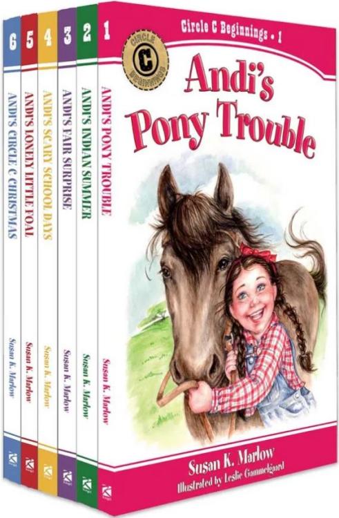 Proving she’s a pro on a pony in Andi’s Pony Trouble, Andi and her best friend Riley then meet their native neighbors in Andi’s Indian Summer. Then she heads to the California State Fair in Andi’s Fair Surprise. Andi’s Scary School Days introduces her to spending days off her home ranch, a change early readers will relate to. Andi’s foal Taffy is growing up, too, and changes come for them both in Andi’s Lonely Little Foal. And readers will get to see a real frontier holiday in Andi’s Circle C Christmas.