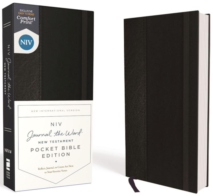 Reflect on the New Testament with this Easy-to-Carry Journal EditionThe popular NIV Journal the Word Bible is now available in a New Testament edition that is small enough to take anywhere, while still leaving you plenty of room for journaling. The NIV Journal the Word New Testament, Pocket Bible Edition allows you to creatively express yourself every day with a unique layout that features Scripture on the left-hand page and a full page of journaling space on the right. This pocket-sized New Testament features Zondervan’s exclusive NIV Comfort Print typeface for easy reading and thick, cream-colored paper for notetaking. The secure elastic strap keeps the cover closed, so you can easily tuck it in your pocket, purse or backpack. All these features make this the perfect Bible for those times when you want to reflect on God’s Word throughout your day.Expertly designed for the New International Version (NIV) text, the Zondervan NIV Comfort Print typeface delivers a smooth reading experience that complements the most widely read contemporary English Bible translation.Features:New Testament text from the accurate, readable, and clear New International Version (NIV)Scripture text on the left-hand page with a full blank page on the right for journaling and artThick, cream-colored paper for notetakingPocket-sized to take anywhereDouble-column formatElastic closureSatin ribbon markerWords of Jesus in redExclusive Zondervan NIV Comfort Print typeface6-point print size