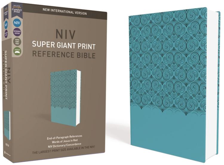 Clearly Study Scripture Featuring a substantial 16.5-point print size and a new, custom NIV typeface, the NIV Super Giant Print Reference Bible provides a clear, smooth and easy reading experience for readers of all ages and visual abilities.Combined with an extra-large print size, this Bible uses the New International Version (NIV), which is the most widely read Bible translation in contemporary English and is trusted for its combination of accuracy, readability, and beauty.Ideal for pulpit use and anyone looking for a Bible that is gentle on the eyes, this NIV Super Giant Print Reference Bible includes:End-of-paragraph referencesComplete text of the accurate, readable, and clear New International VersionEasy-to-read 16.5-point print sizeExclusive NIV Comfort Print NIV dictionary/concordance and other study helpsWords of Christ in red