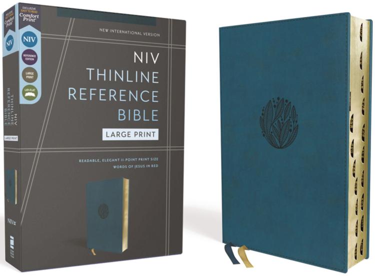 Easy to Read. Easy to Carry.The NIV Thinline Reference Bible, Large Print captures the depth and beauty of the Bible, in a take-anywhere size. Containing a helpful center-column reference system while measuring less than an inch thick, it is the perfect resource to carry to work, travel, church, and Bible study for on-the-go access to God’s Word. Expertly designed for the New International Version (NIV) text, Zondervan NIV Comfort Print(R) typeface delivers a smooth reading experience that complements the most widely read contemporary-English Bible translation.Features:The full text of the accurate, readable, and clear New International Version (NIV)Less than one inch thickCenter-column cross references-a helpful tool for connecting Scripture to other ScriptureNIV Concise Concordance with over 2000 word entriesEight pages of full-color mapsWords of Jesus in redDouble-column formatPresentation pageTwo satin ribbon markersLeathersoft cover lies flat when openThumb-indexed tabsExclusive Zondervan NIV Comfort Print typefacePrint size: 11